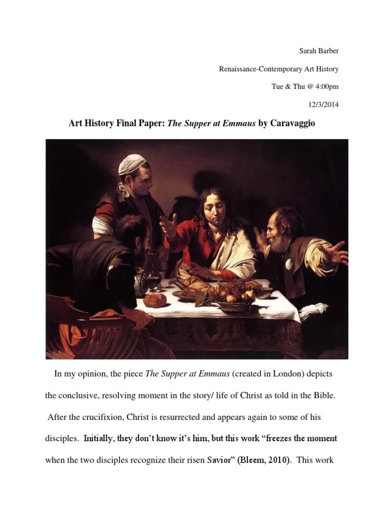 04/05/2017 · michelangelo merisi da caravaggio, the supper at emmaus, 1601, oil on canvas, 55 x 77 inches, 141 x 196.2 cm (national gallery, london) speakers: Took bread, and blessed it, and brake and gave to them. One of the disciples, cleopas, wears the scallop shell of a … 04/05/2017 · michelangelo merisi da caravaggio, the supper at emmaus, 1601, oil on canvas, 55 x 77 inches, 141 x 196.2 cm (national gallery, london) speakers: They failed to recognise him, but that evening at supper he '.